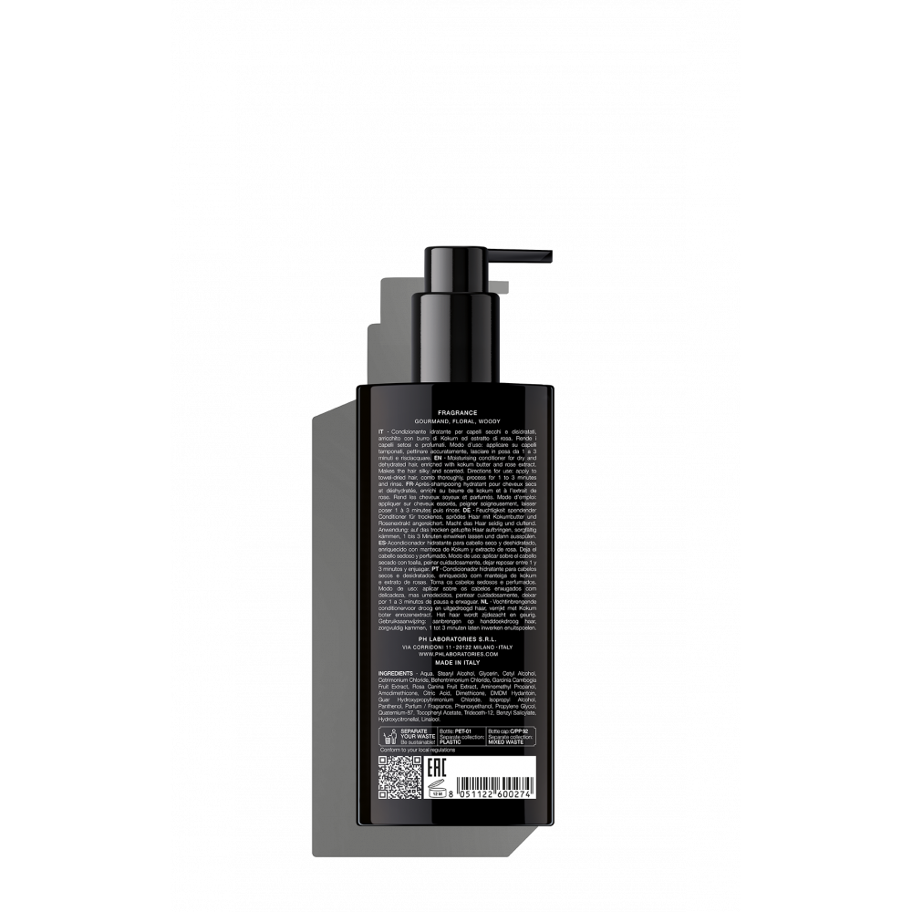 trattamento condizionante idratante per capelli secchi e disidratati. Rende i capelli setosi e profumati. Modo d’uso: applicare su capelli tamponati, pettinare accuratamente, lasciare in posa da 1 a 3 minuti e risciacquare.